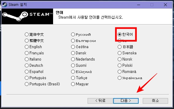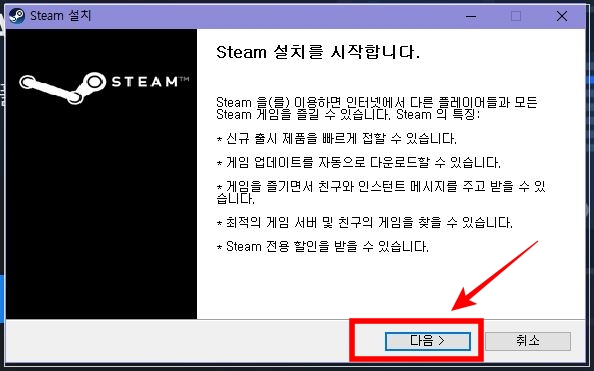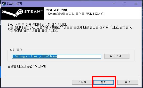 'Steam 설치' 버튼을 눌러주세요!