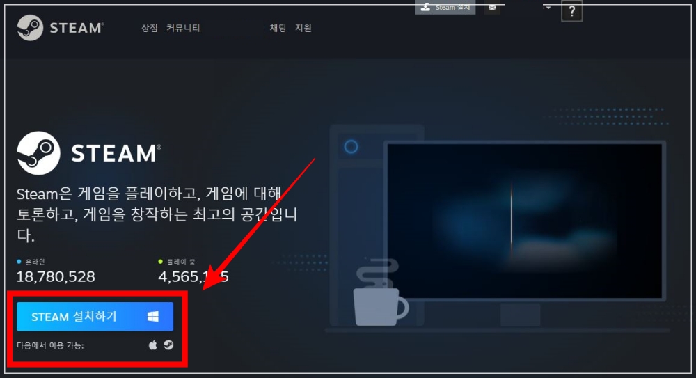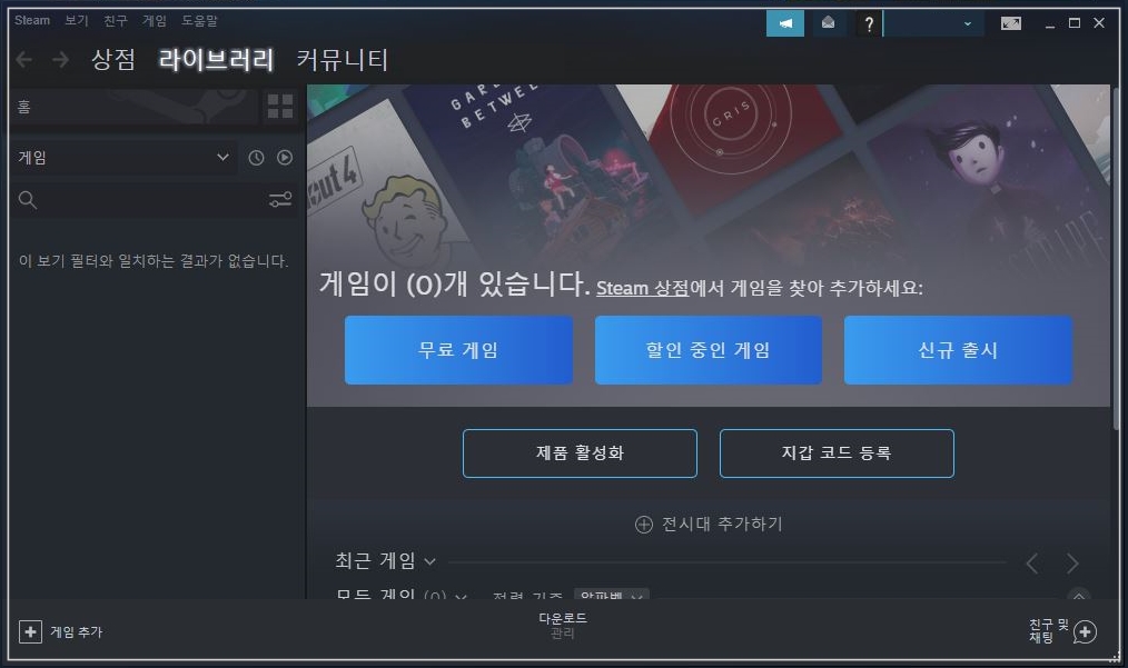 1. 스팀 메인 화면에서 설치하기